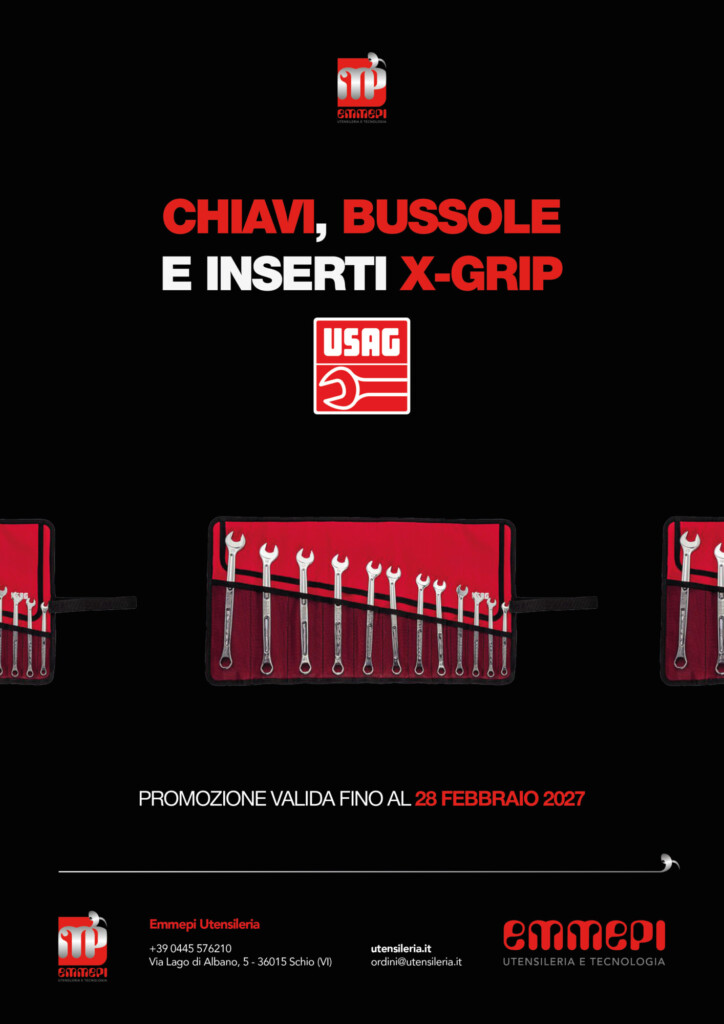 La promozione USAG è dedicata a una selezione di utensili manuali con tecnologia X-Grip, progettata per garantire presa efficace anche su viti danneggiate e trasmissione di coppia superiore rispetto ai profili standard.